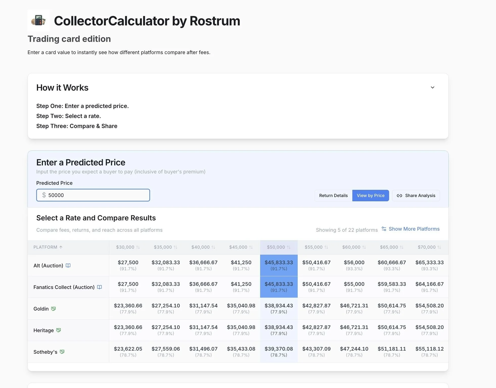 A free tool to compare where to sell your trading cards—and what you’ll actually make.